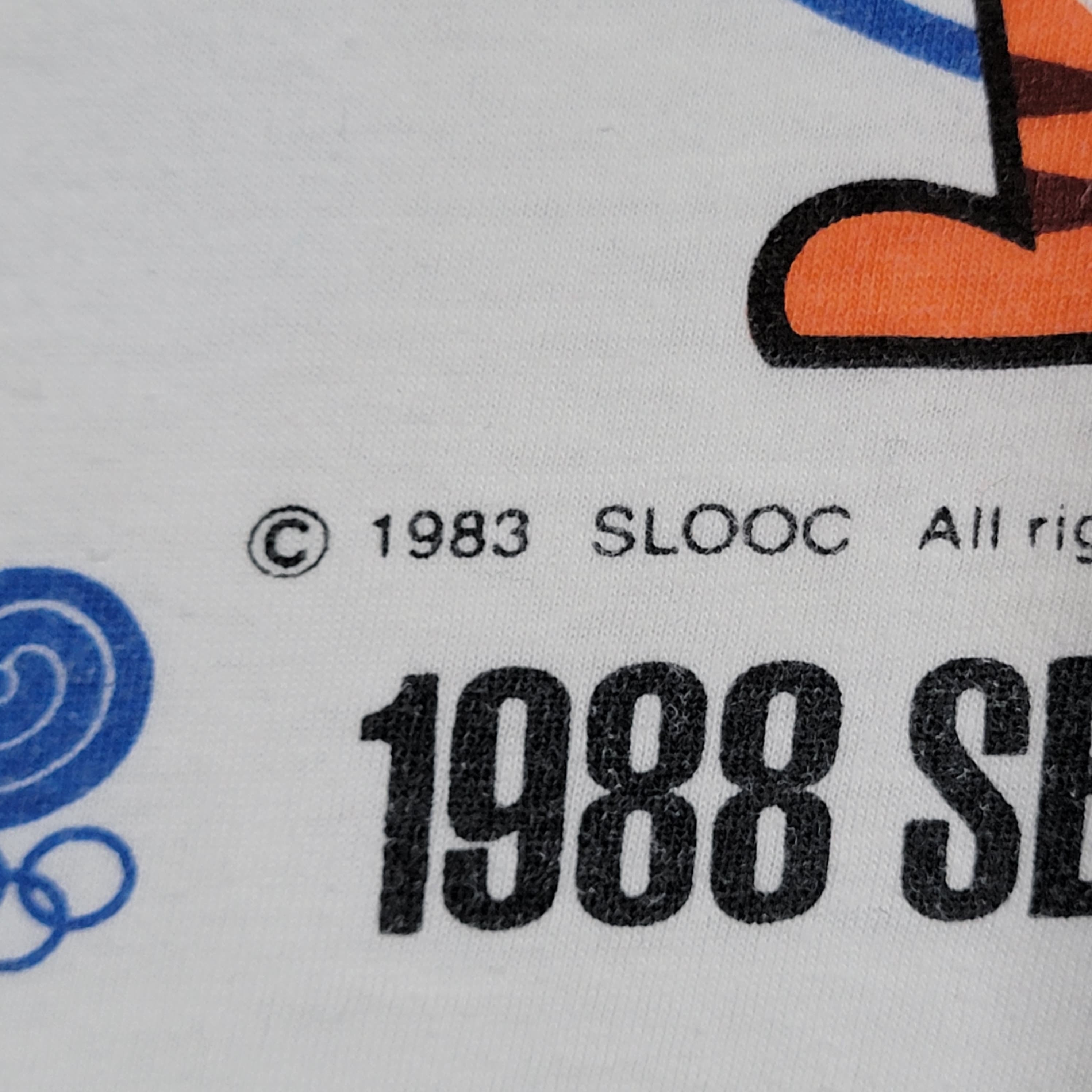 Korea Vintage 80s Olympics Tiger T-Shirt - 1988 Seoul Games - Single Stitch White Color Tee - Extremely Rare - Size : Medium - FREE SHIPPING
