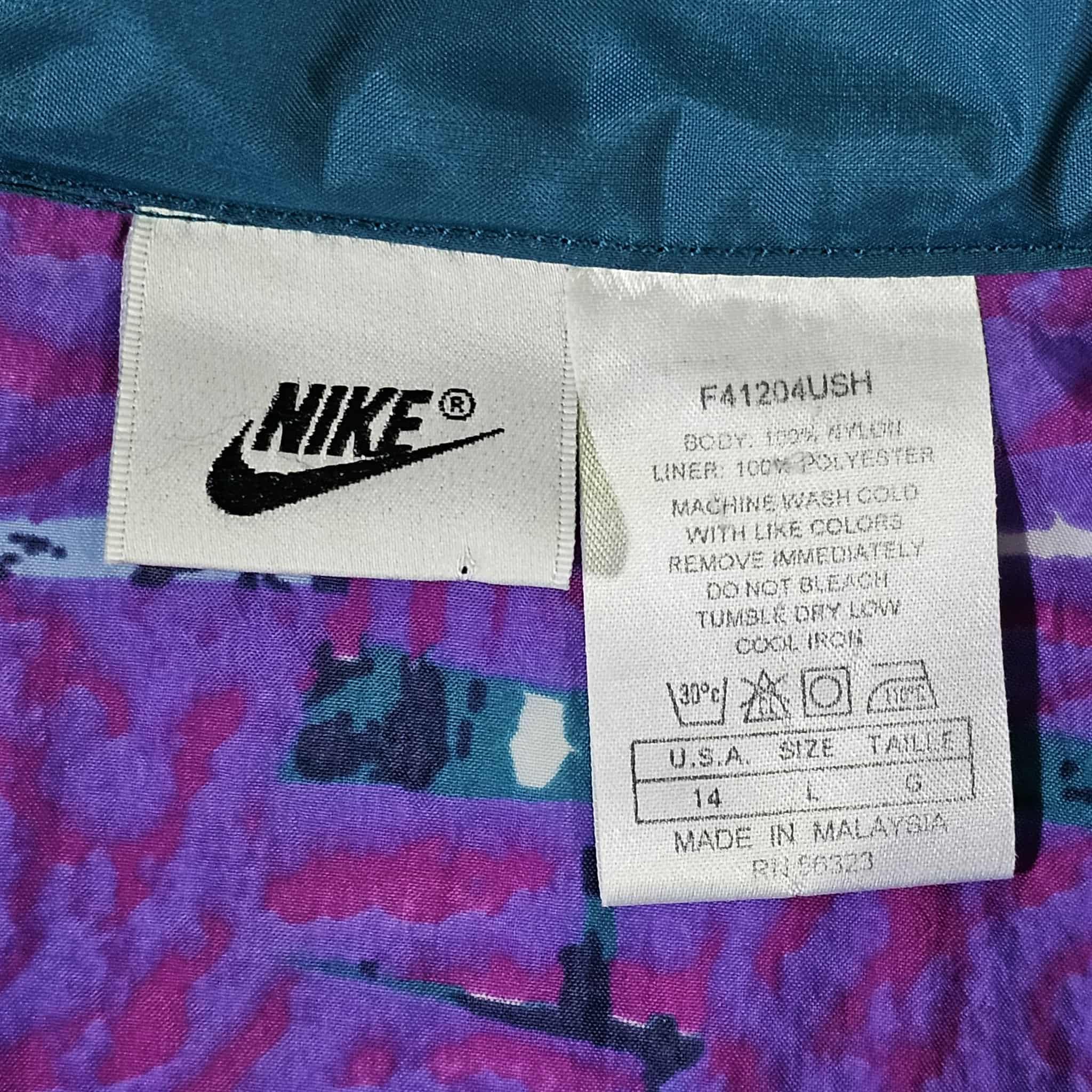 Nike Vintage 90s Abstract Art Windbreaker Jacket - Multicolor - Stitched On Logo - Zipper Closure - Size YOUTH : Large ( L ) - FREE SHIPPING