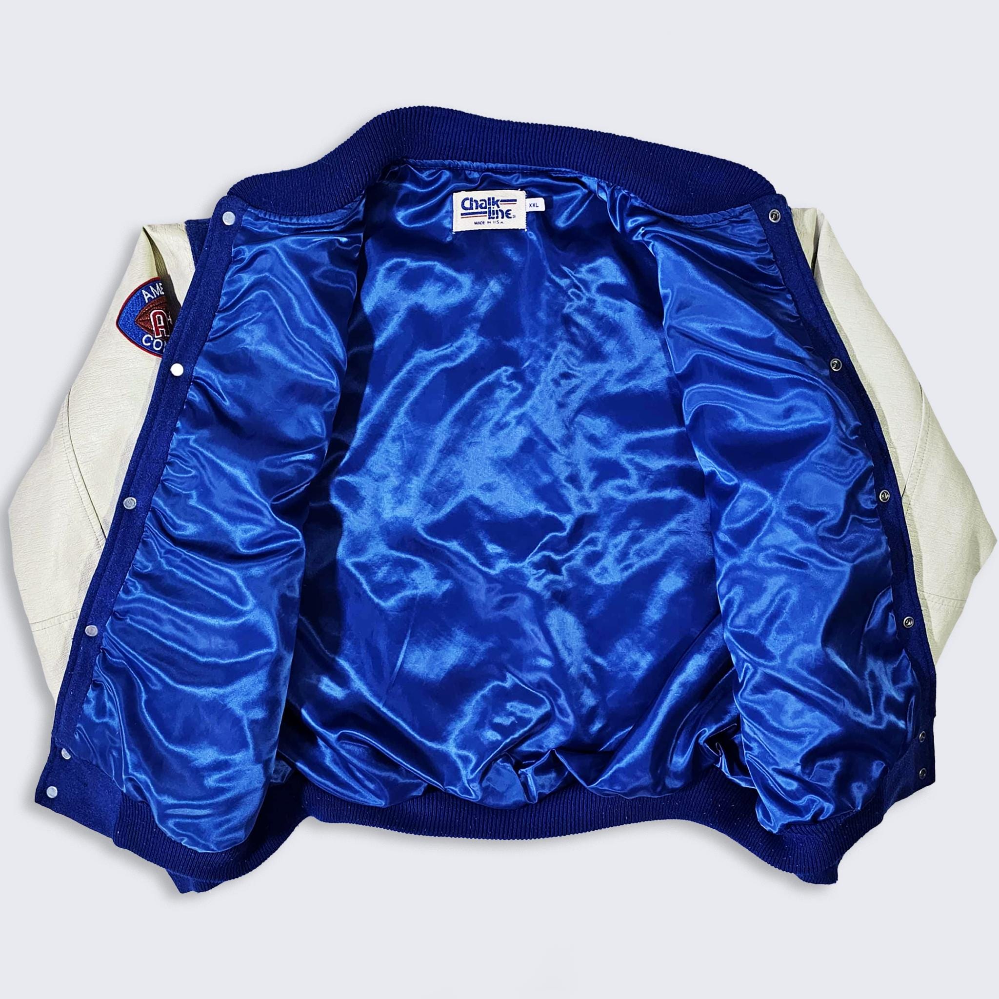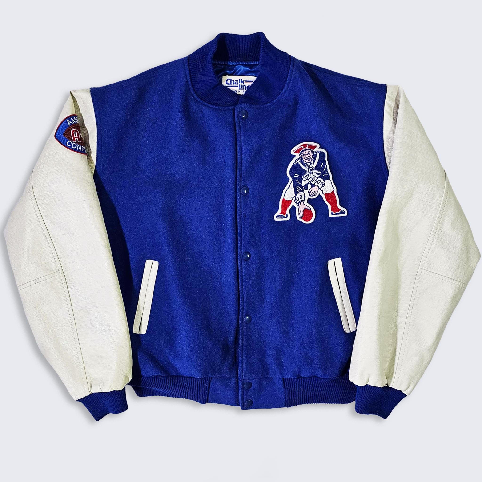 New England Patriots Vintage 80s Chalk Line Varsity Jacket - NFL Football Coat - Made in USA - Size Men's : 2XL ( XXL ) - Free Shipping
