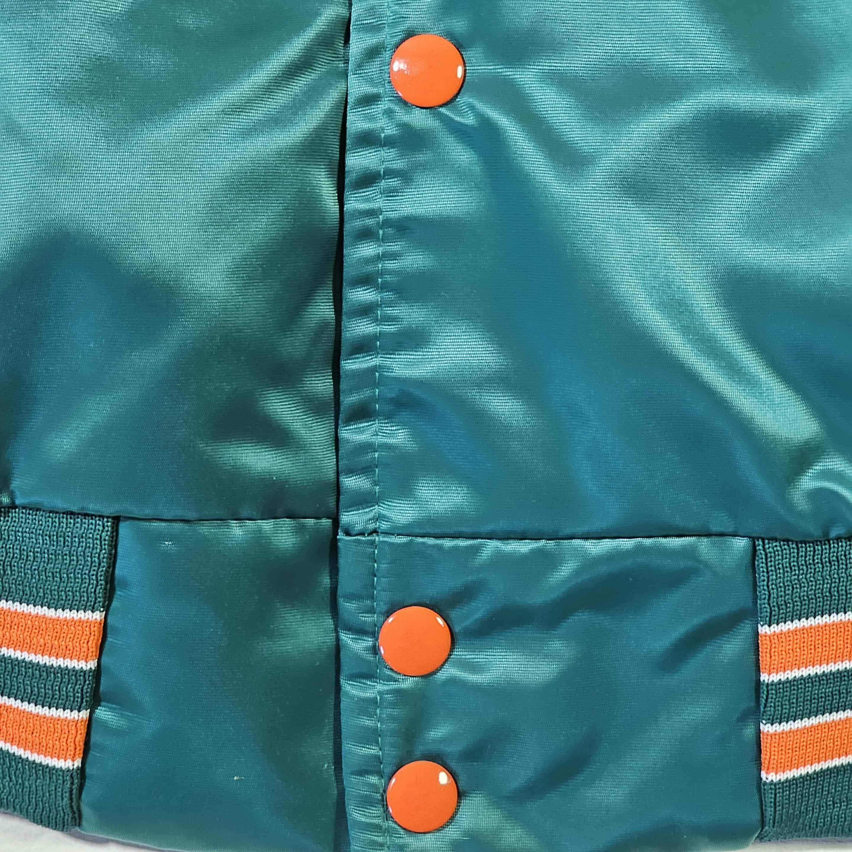 Miami Dolphins Vintage 80s Chalk Line Satin Bomber Jacket - Blue & Orange NFL Football Coat - Snap Closure - Size Men's : XL - FREE Shipping
