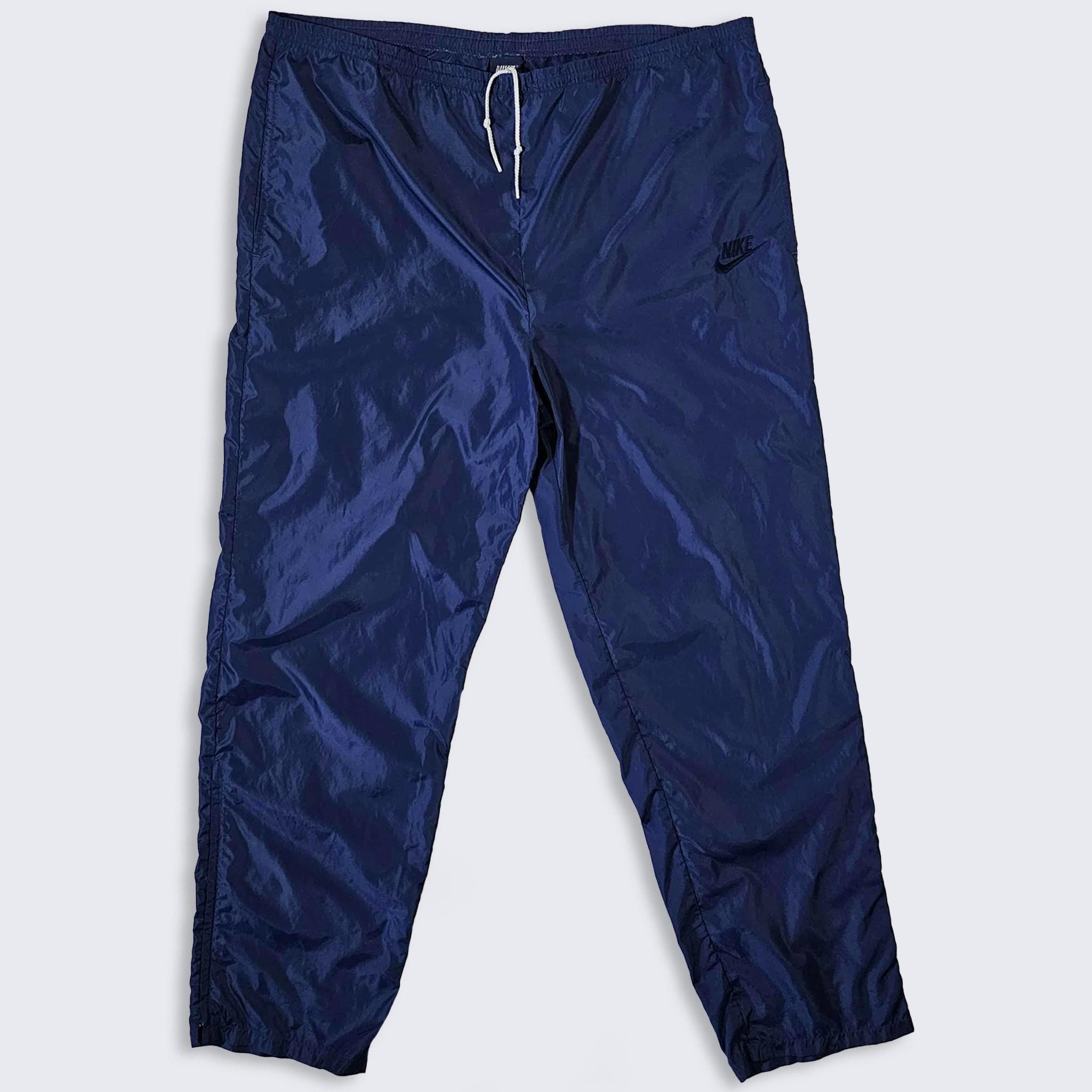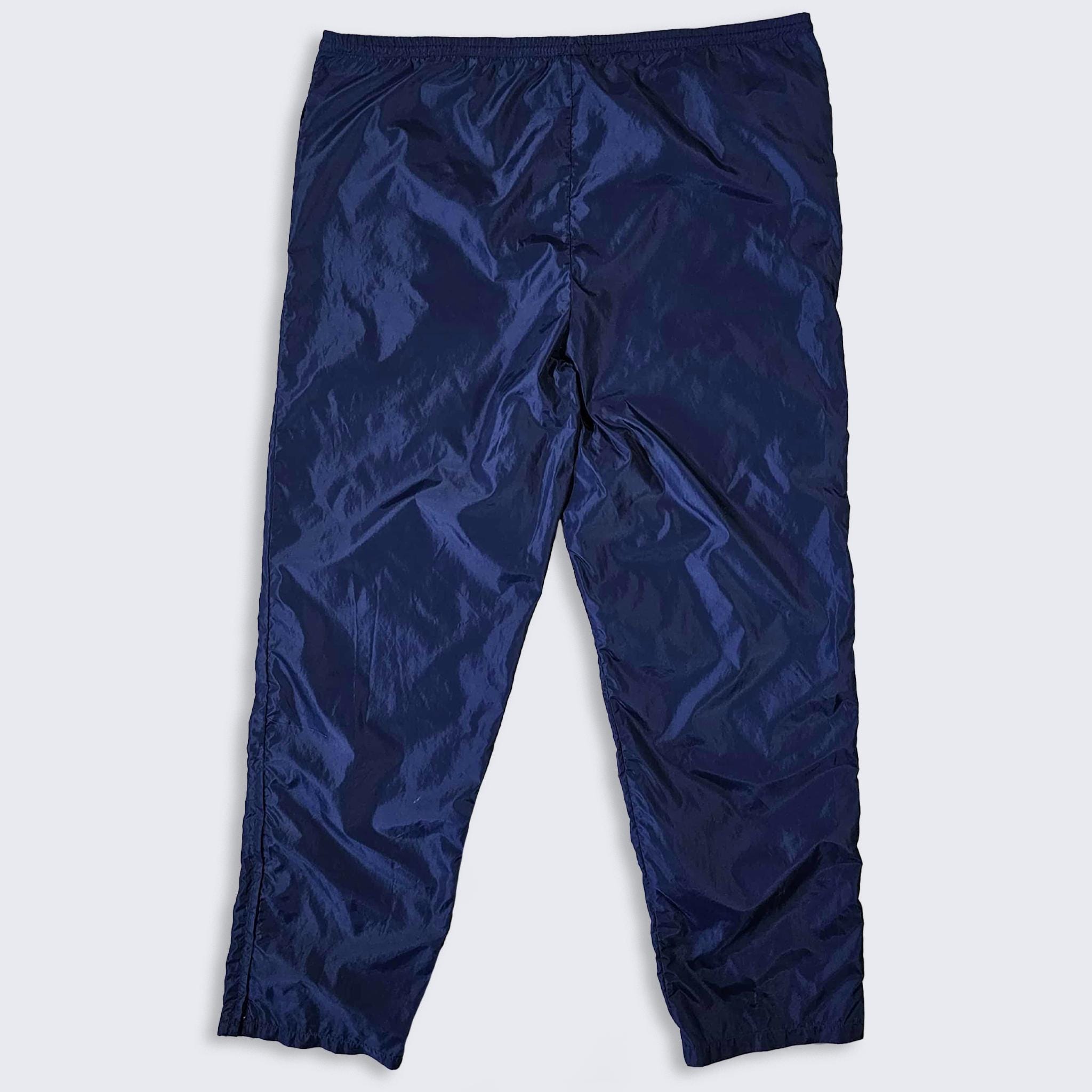 Nike Vintage 80s Navy Blue Swishy Windbreaker Pants - Blue Athletic Bottoms - Not Lined - Men's Size : Extra Large ( XL ) - Free Shipping