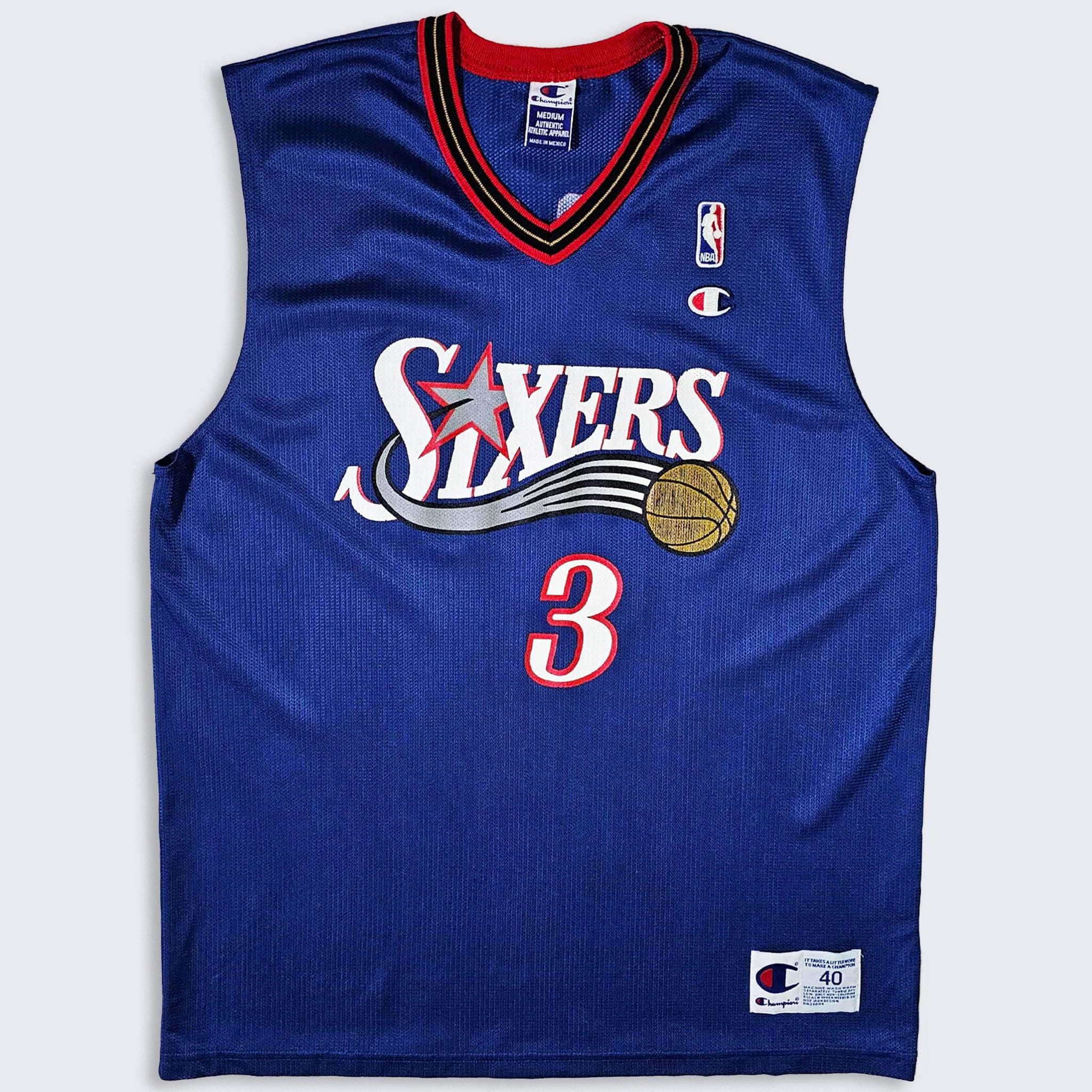 Philadelphia 76ers Vintage Allen Iverson Champion Basketball Jersey - NBA Blue Uniform Shirt - Size Men's : Medium ( M ) - FREE Shipping