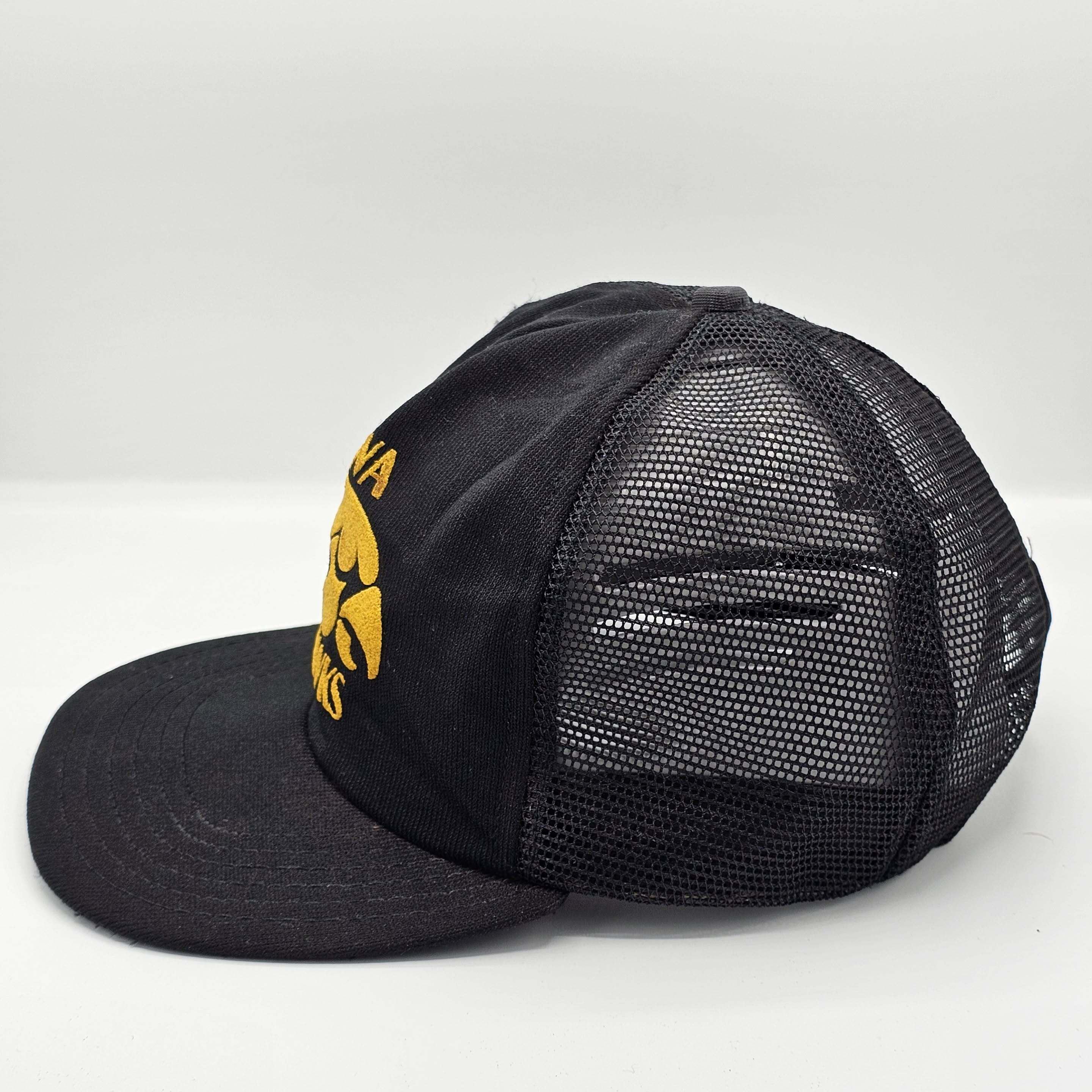 Iowa Hawks Vintage 80s Trucker Snapback Hat - Black Color Baseball Style Cap - Stitched On Logo - One Size Fits All - FREE SHIPPING
