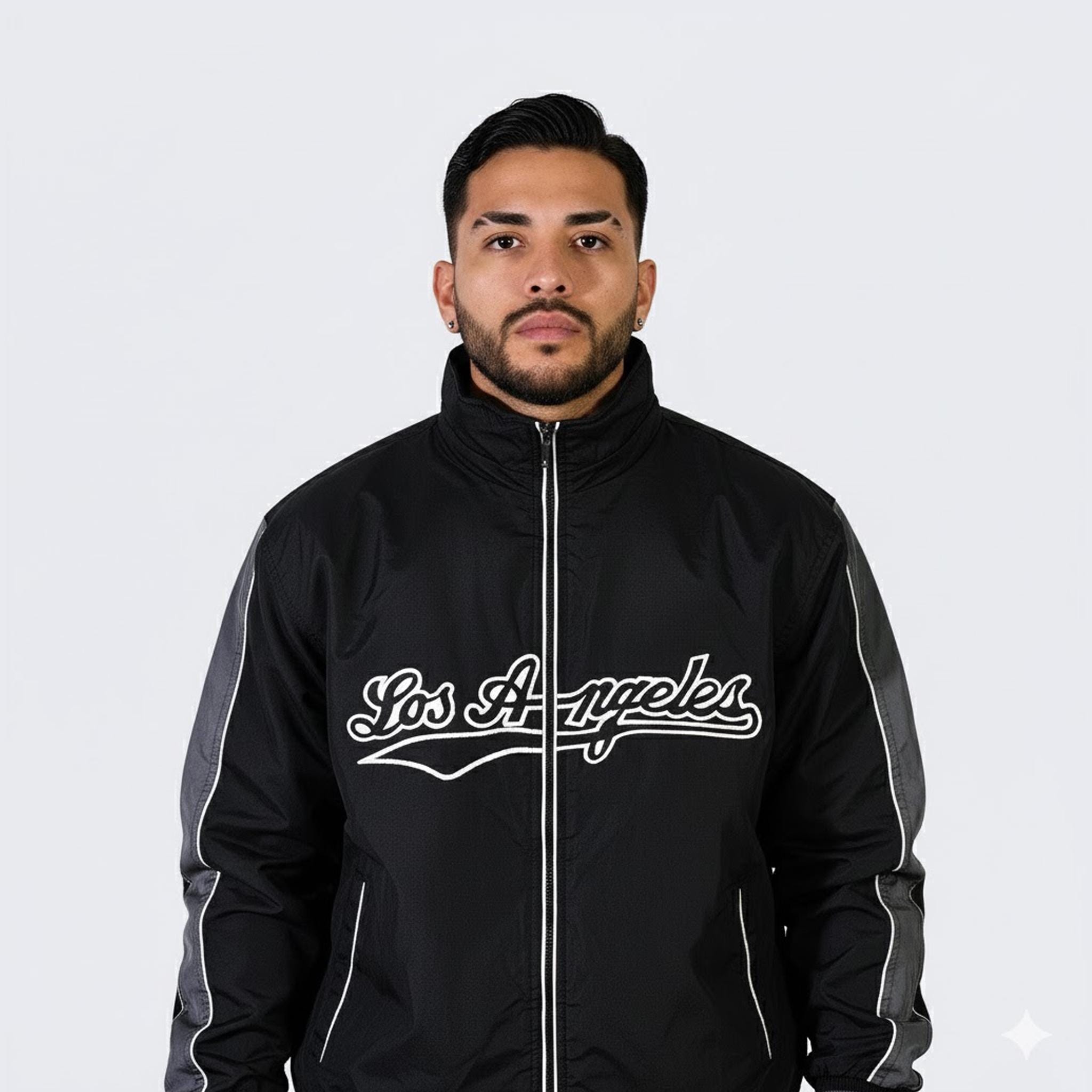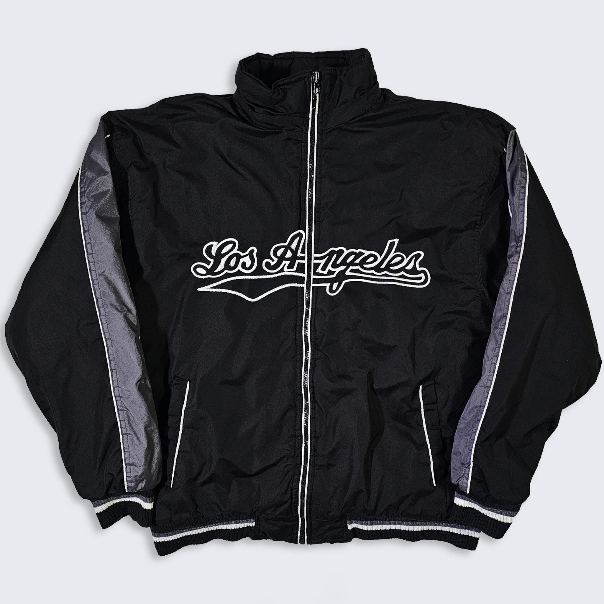 Los Angeles Vintage 90s Black Fleece Lined Jacket - Black Coat - Stitched On Logo - Zipper Closure - Men's Size: Large ( L ) - FREE SHIPPING