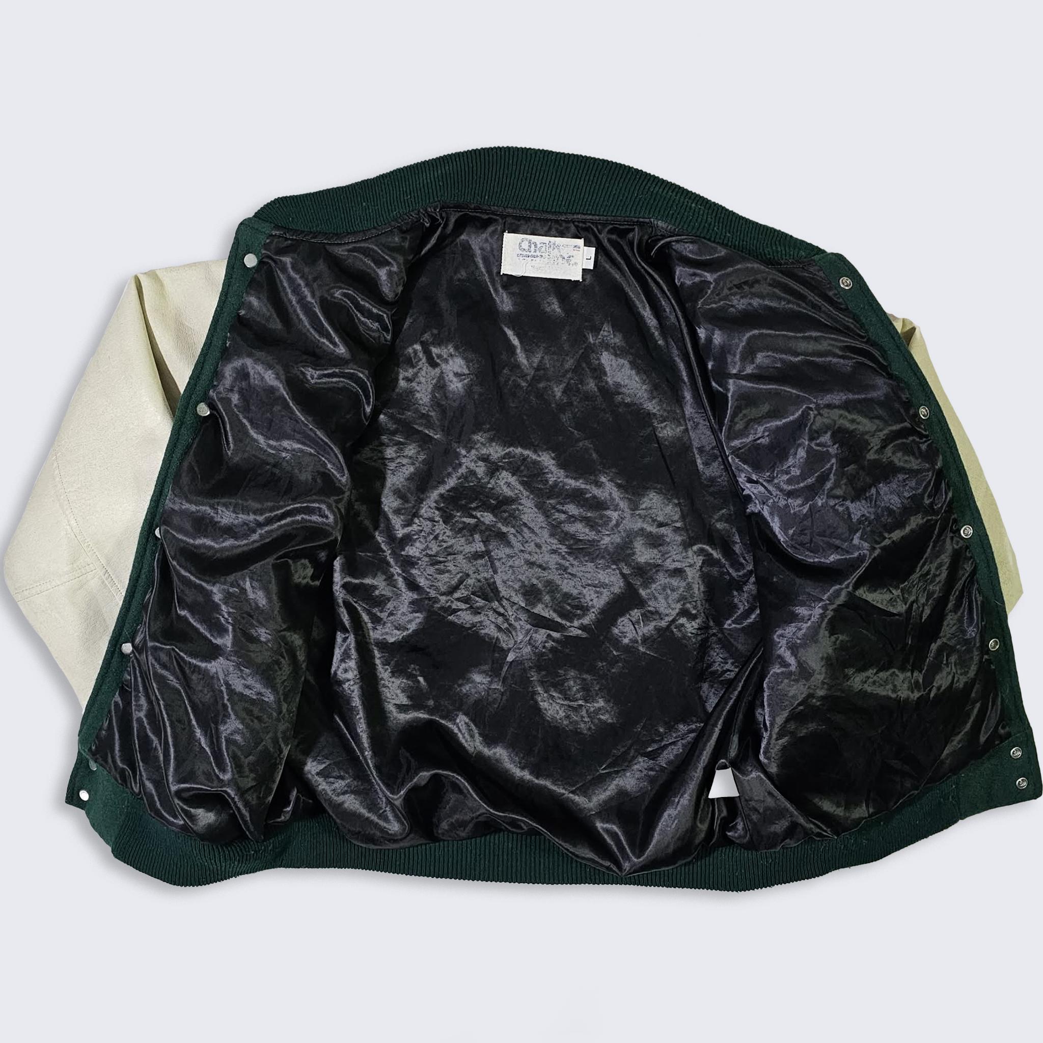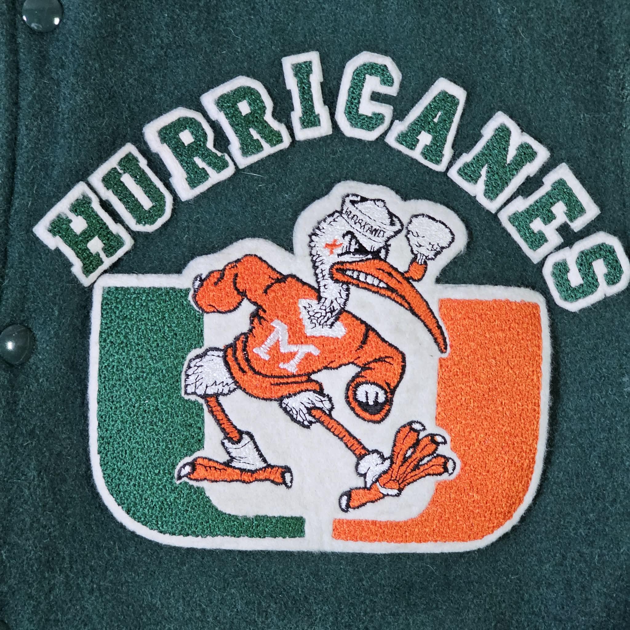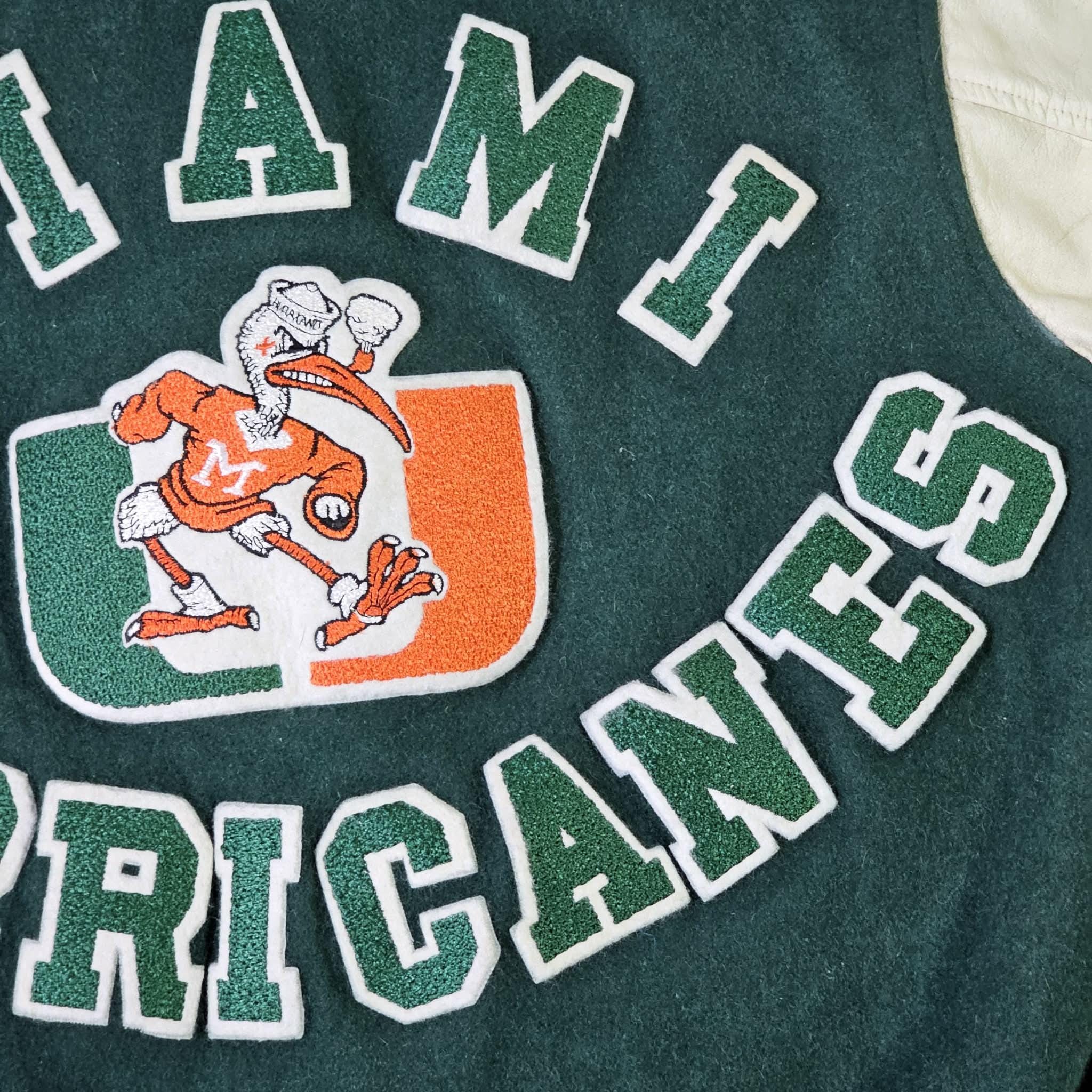 Miami Hurricanes Vintage 80s Chalk Line Varsity Jacket - Green Color Coat - Stitched On Logos - Men's Size : Large ( L ) - Free Shipping